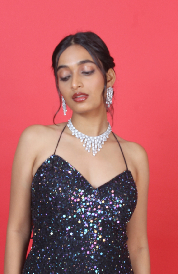 American Diamond Style Crystals Necklace with Earrings Jewellery Set for Women