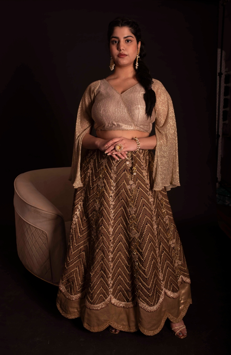 • Intricate Embroidery: Adorned with exquisite resham, thread, and zari embroidery.